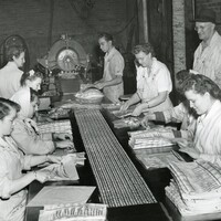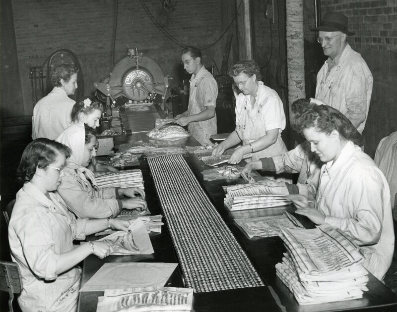 Workers wrapping bacon at the American Packing and Provision Company