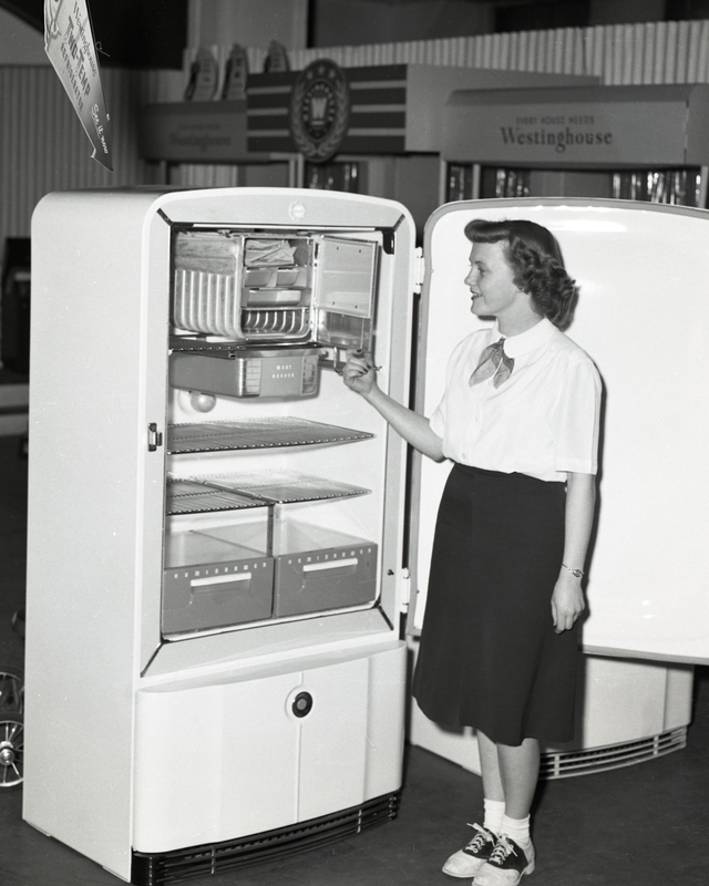 Weber College student looking at a fridge for Lowe's Good Hardware
