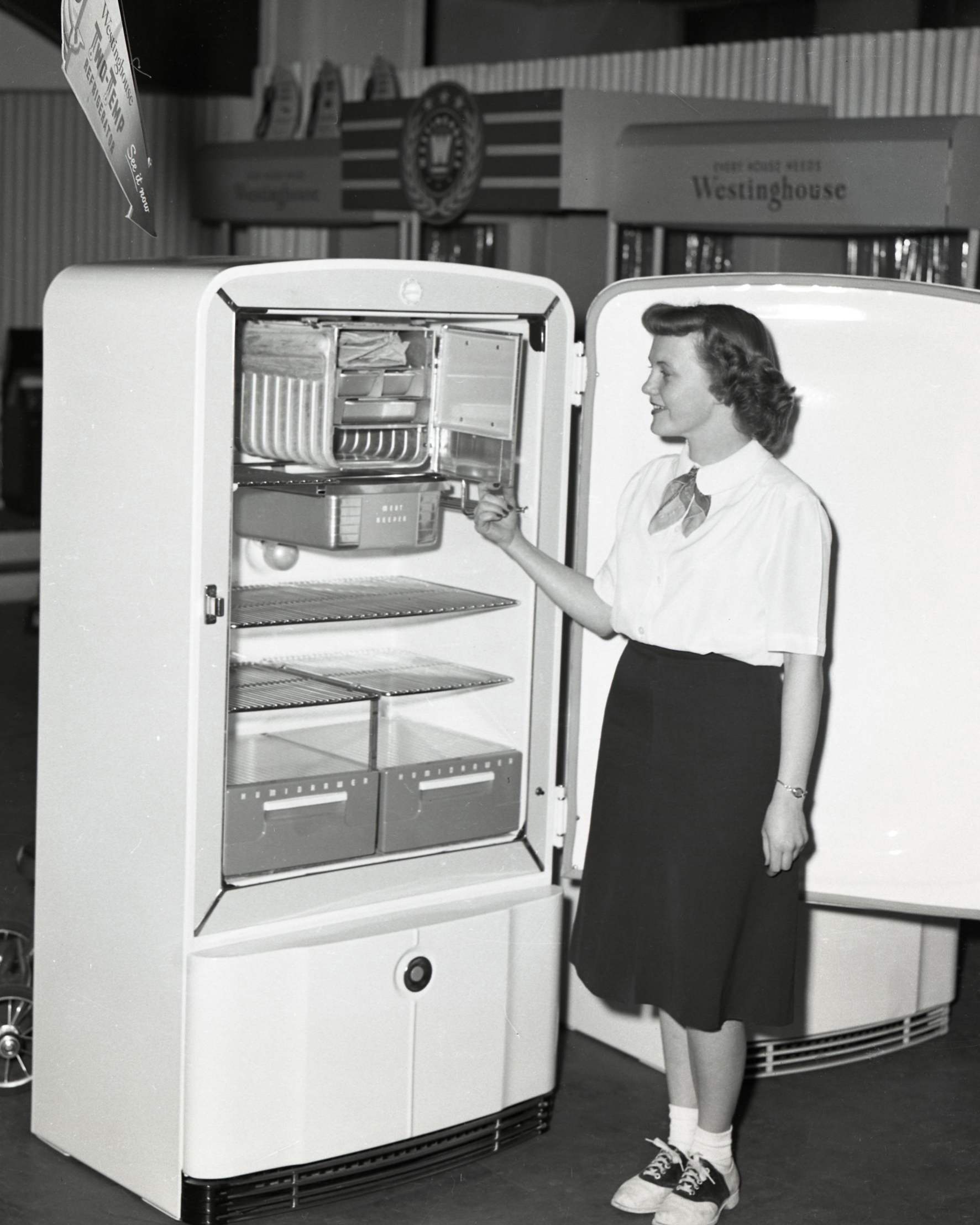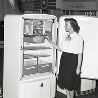 - Weber College student looking at a fridge for Lowe's Good Hardware