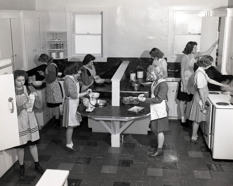 - Weber High School is bringing home life into education. Two cottages near the campus have been converted to accommodate nutrition and tailoring classes. Above is one half of the four-unit kitchen in the nutrition cottage, with a typical class preparing a meal.