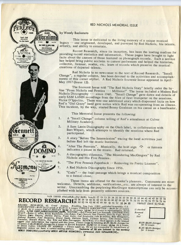 Record Research, Red Nichols Memorial Issue