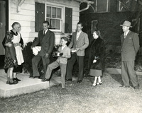 Neighbors delivering meals to their elderly neighbor